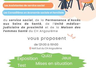 Centre Hospitalier d'Angoulême Le Centre Hospitalier d'Angoulême est l'établissement public de santé de référence pour la Charente. Il dispose d'un plateau technique important et innovant afin de permettre un accès à des soins de qualité pour la population du Département. En savoir plus Les atouts du CHA Accès rapides Trouver un praticien Trouver un service EHPAD/USLD Instituts de formation Trouver une consultation Admission Maternité Offres d'emplois Toutes les actualités Après-midi « théâtre et débat » : pathologie neuro-évolutives, quand la mémoire parle Publié le 15 janvier 2026 Café Andy 2026 : Parlons Handicap Publié le 15 janvier 2026 Toutes les équipes du CH Angoulême vous souhaitent une belle et heureuse année 2026 ! Publié le 31 décembre 2025 Toutes les actualités Les établissements de la direction commune Direction commune Groupement Hospitalier de Territoire GHT
