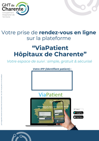 Votre prise de rendez-vous en ligne... c'est maintenant possible sur la plateforme "ViaPatient Hôpitaux de Charente", espace de suivi simple, gratuit & sécurisé.