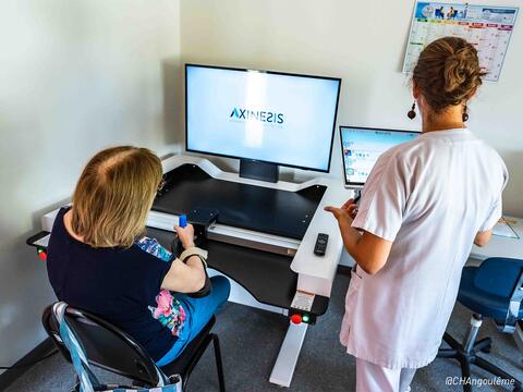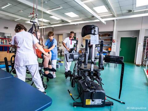 Des séances de balnéothérapie sont dispensées par des kinés en soins externes suite à une consultation avec un médecin MPR du service.