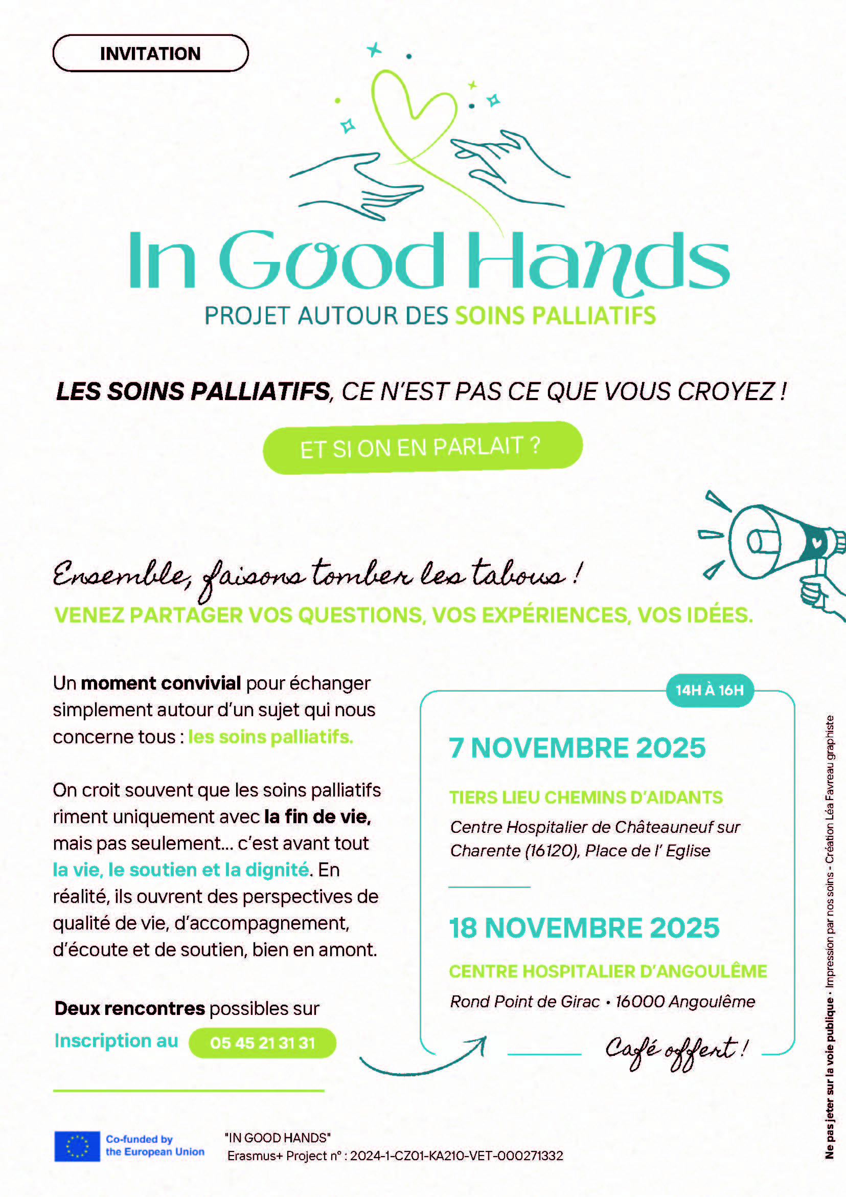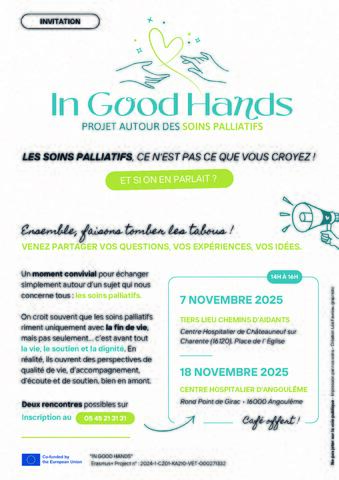 Dans le cadre, du projet européen Erasmus+ "In Good Hands", deux rencontres sont proposées pour échanger autour des soins palliatifs, un sujet qui touche à la vie, au soutien et à la dignité.