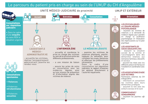 L’Unité Médico Judiciaire de Proximité (UMJP) est un secteur accueillant des personnes victimes de violence, elles sont accueillies par une équipe pluri professionnelle formée.